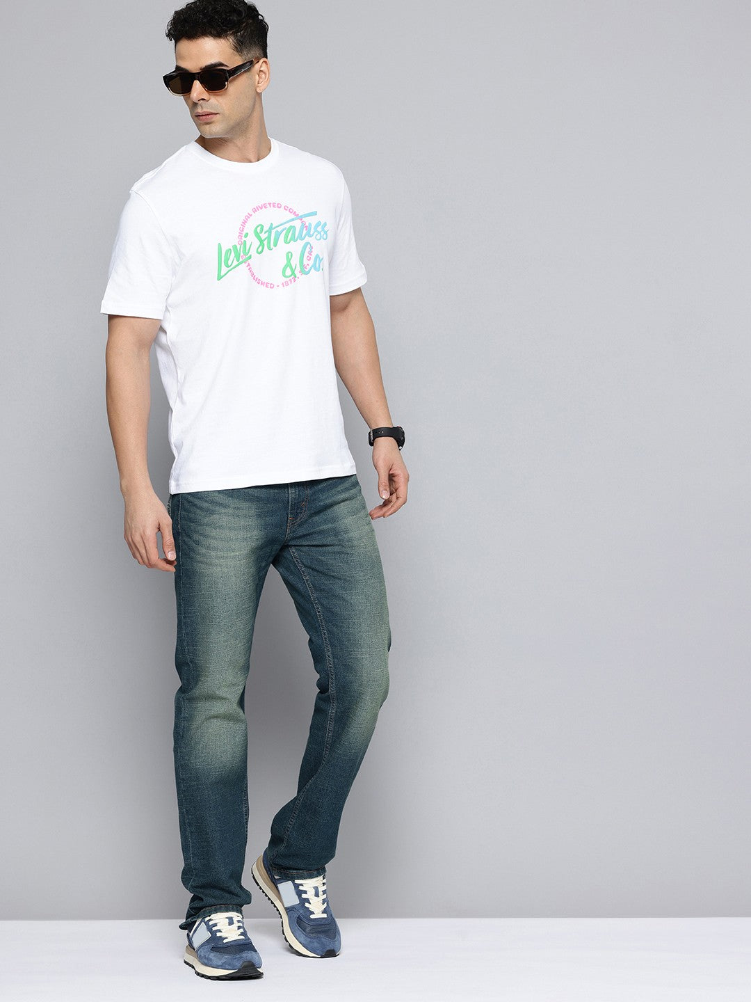 Iconic Style has met comfort. A fit that's not too baggy/relaxed and not too slim. The Levis 513 Straight fit is versatile and gives a streamlined silhouette. Wear them with a t-shirt or buttoned shirt, either would work. These blue jeans with a dark shade are made of cotton and will stay durable providing exceptional ease of movement and wearing comfort.
