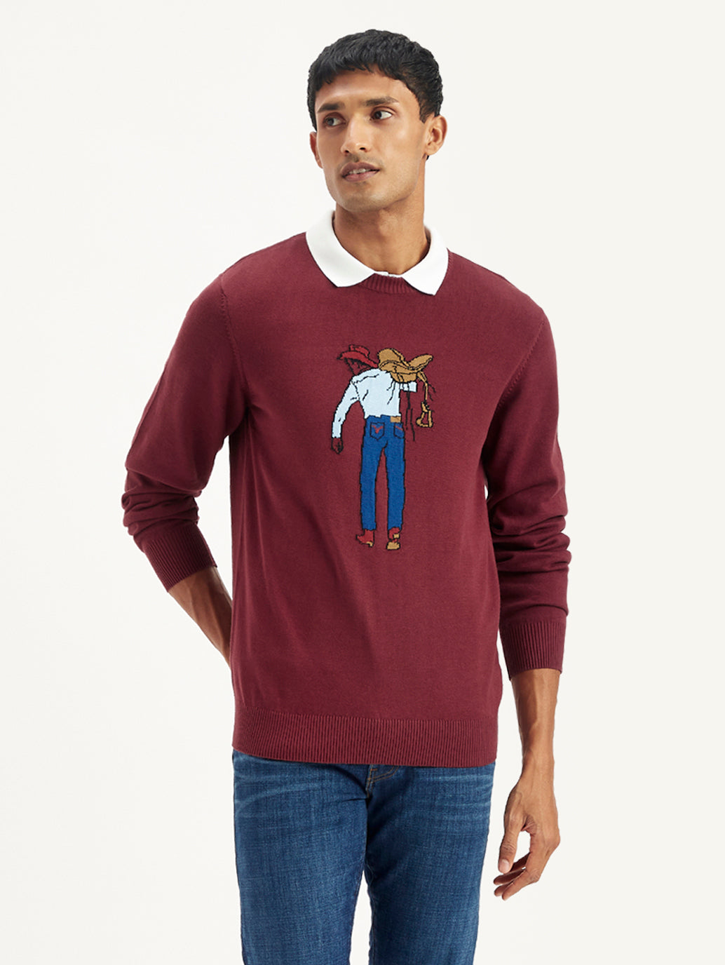 Is your knitwear collection in need of a refresh? Meet this Levi's sweater. Crafted from fine cotton, its classic full sleeves give it a stylish look. Featuring graphic pattern in maroon, this sweater is reliable.