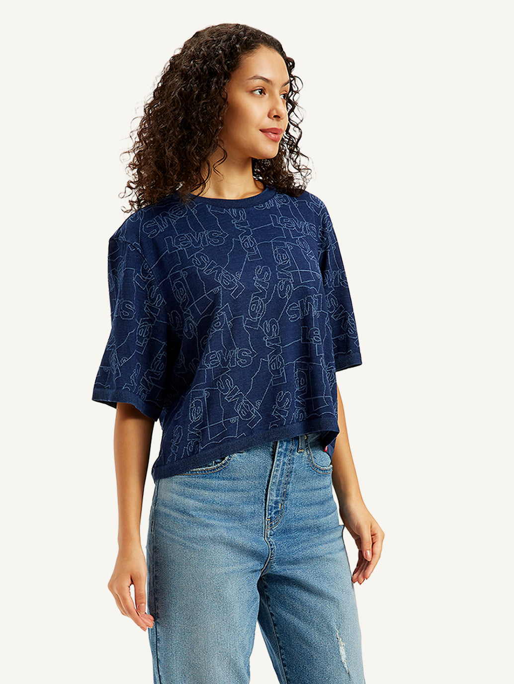 Every woman's wardrobe needs a dependable T-shirt, and this navy t-shirt delivers! With a crew neck and elbow sleeves, this Levi's t-shirt exudes charm. Effortlessly cool, it's guaranteed to elevate your casual wardrobe like no other.