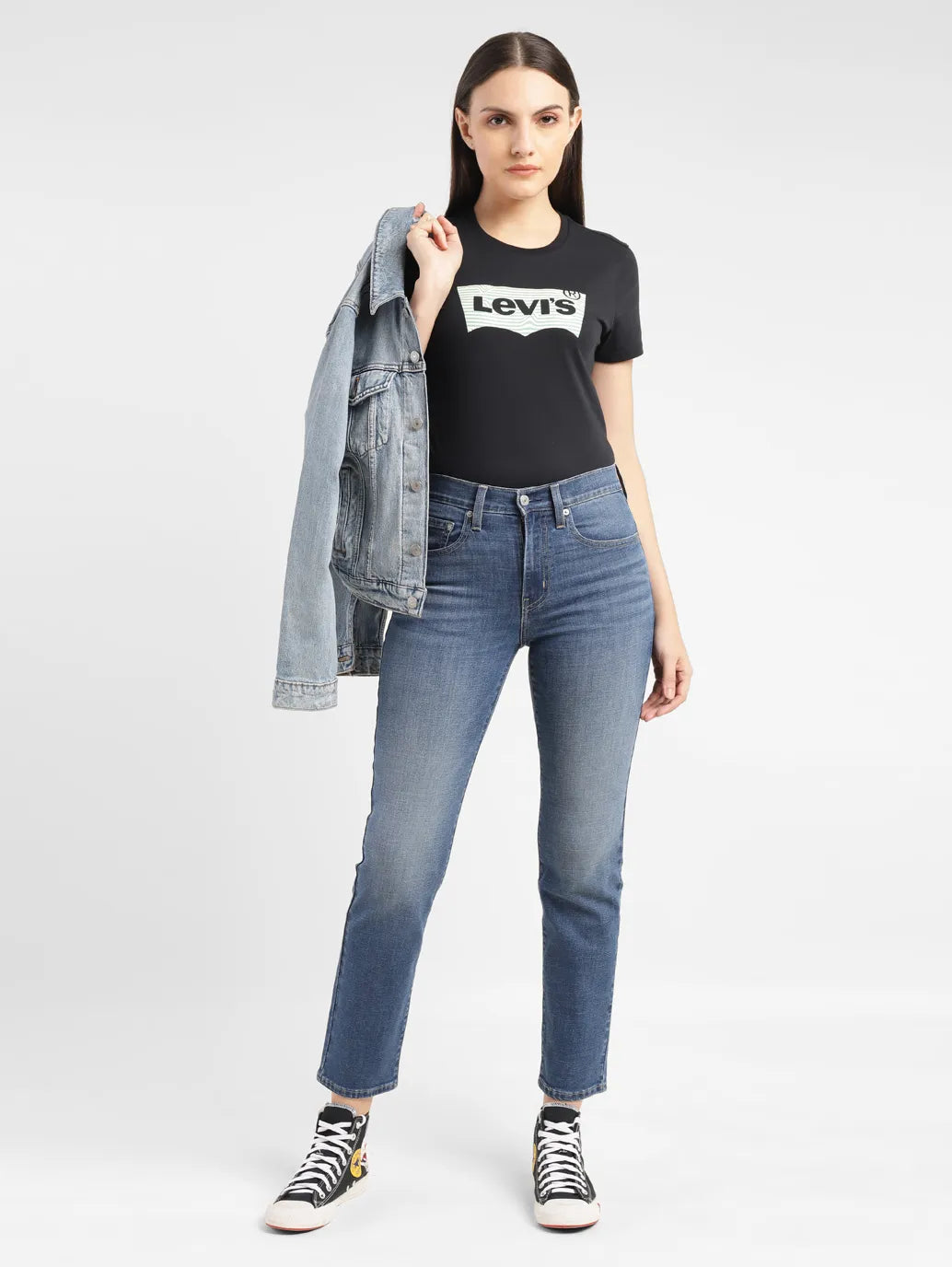 These everyday 724 jeans can become a sleek base for all your outfits. It's a versatile fit with a flattering high rise. Make your first impression the only impression with these stylish slim fit, blue jeans from Levis. Crafted in cotton fabric with a full length, it sports a mid-wash look. With just the right fit, it is perfect for the day as well as evening hangouts with your friends!