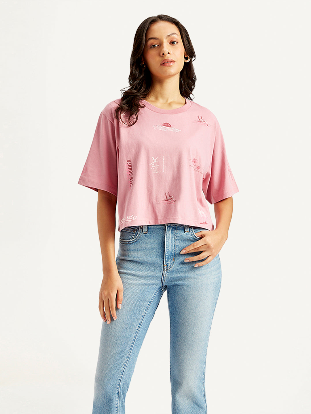 Every woman's wardrobe needs a dependable t-shirt, and this pink t-shirt delivers! With a crew neck and elbow sleeves, this Levi's t-shirt exudes charm. Effortlessly cool, it's guaranteed to elevate your casual wardrobe like no other.
